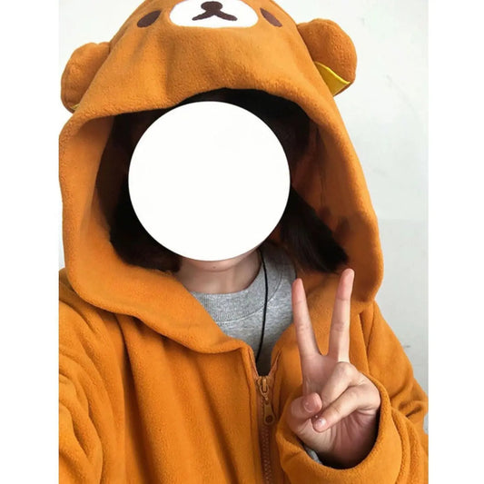 Kawaii Rilakkuma Coat Women Polar Fleece Hoodies Cute Zip Hoodies Fall Winter Clothes Woman Clothing Outerwears