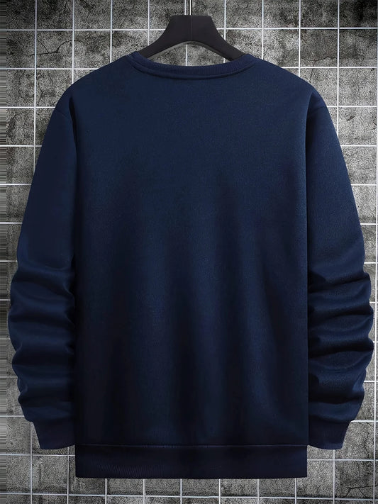 Men's autumn and winter fashionable casual loose Paris graphic print fleece pullover long sleeved round neck sweatshirt