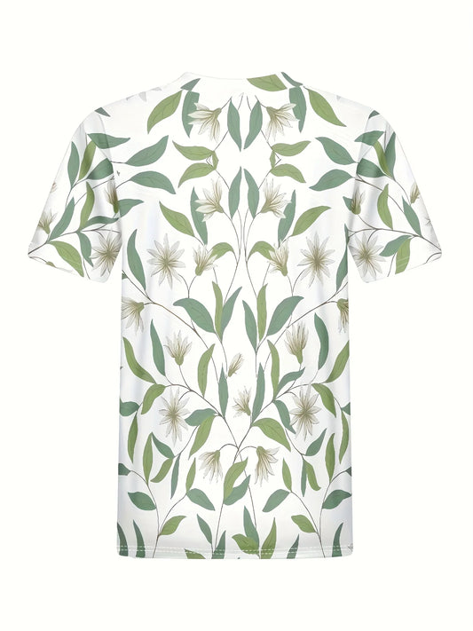 Women's Tee - Green Leaf & Floral Pattern Graphic, Minimalist Nature Botanical Design for Casual Daily Wear