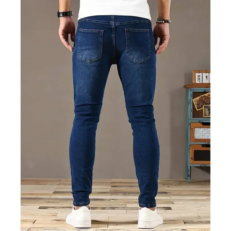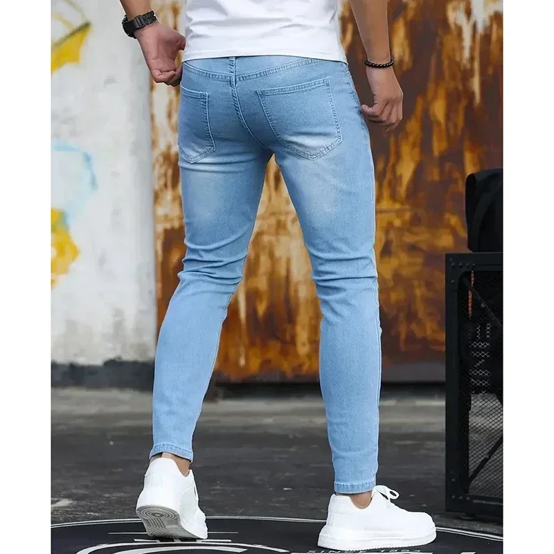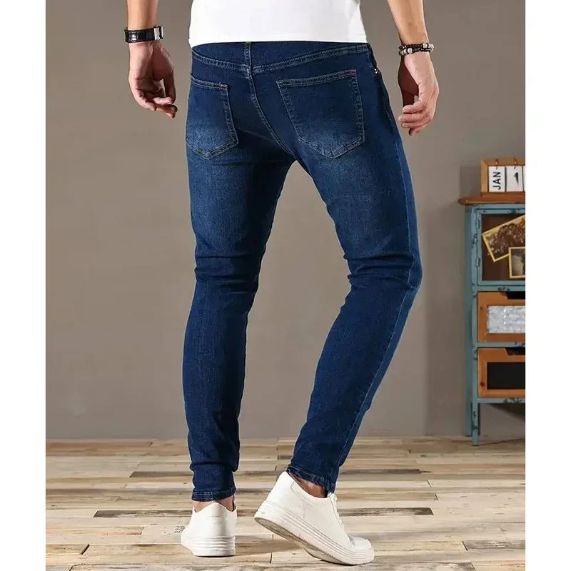 2025 Spring Men Designer Narrow Leg Jeans Male Comfortable Baggy Straight Leg Denim Pants Classic Solid Casual Daily Trousers