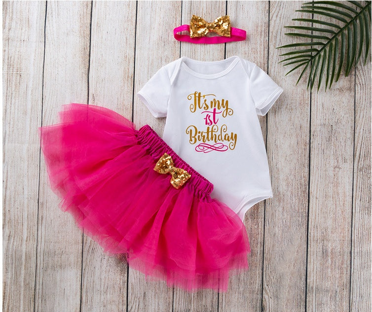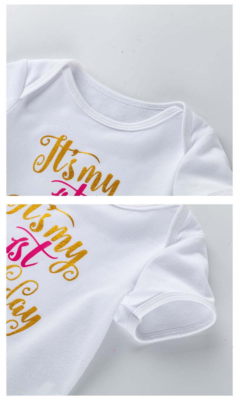 Fashion Girls' Short-sleeved Letter Printed Blouse Mesh Skirt