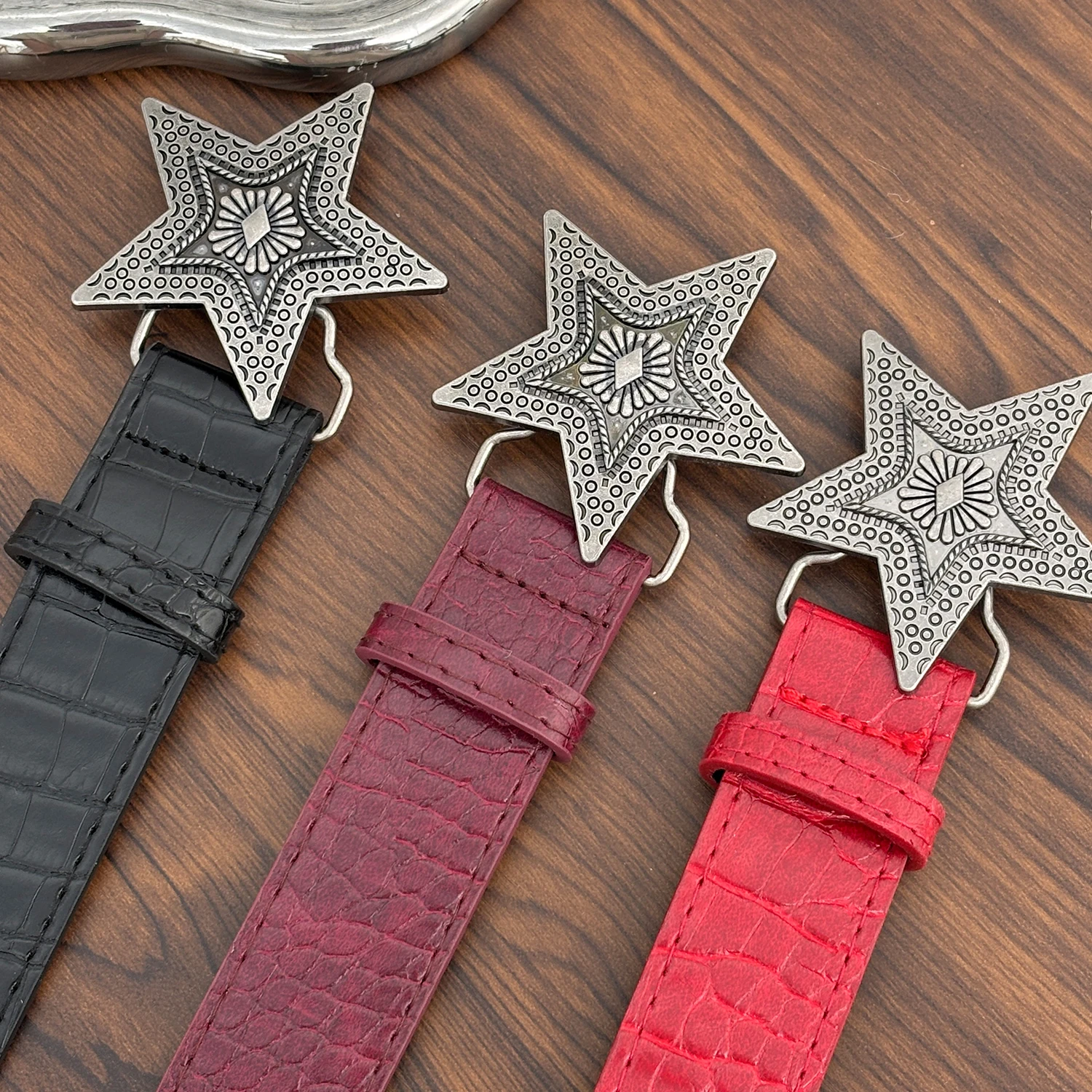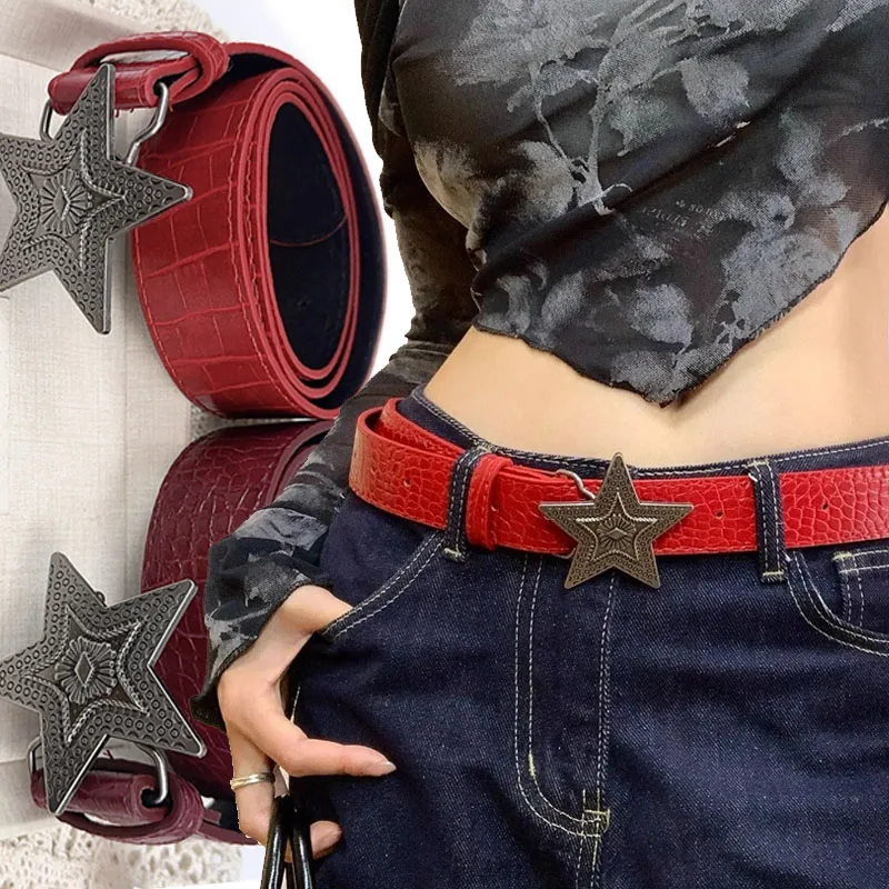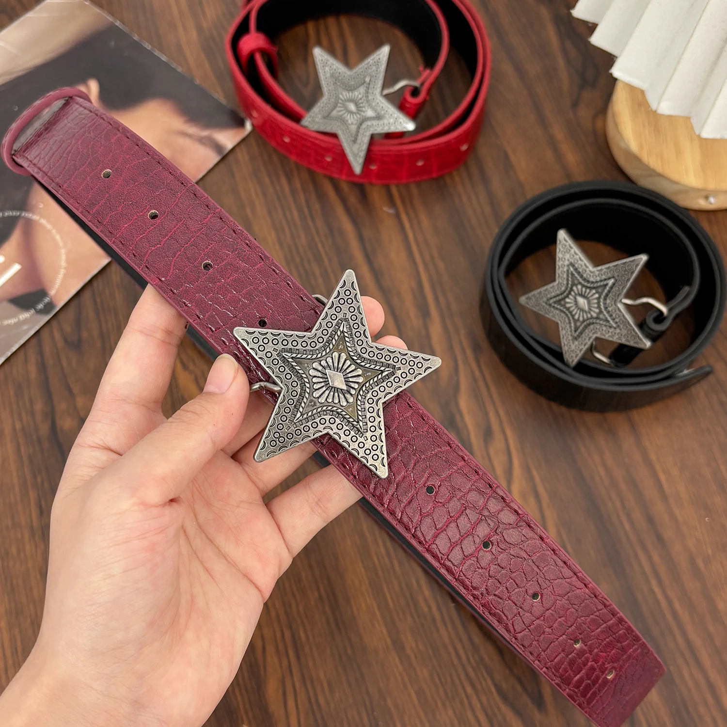 Gothic Punk Star Wine Red Leather Belt Vintage Fashion Trend Personalized Subculture for Spicy Girls Five-pointed Star Waistband