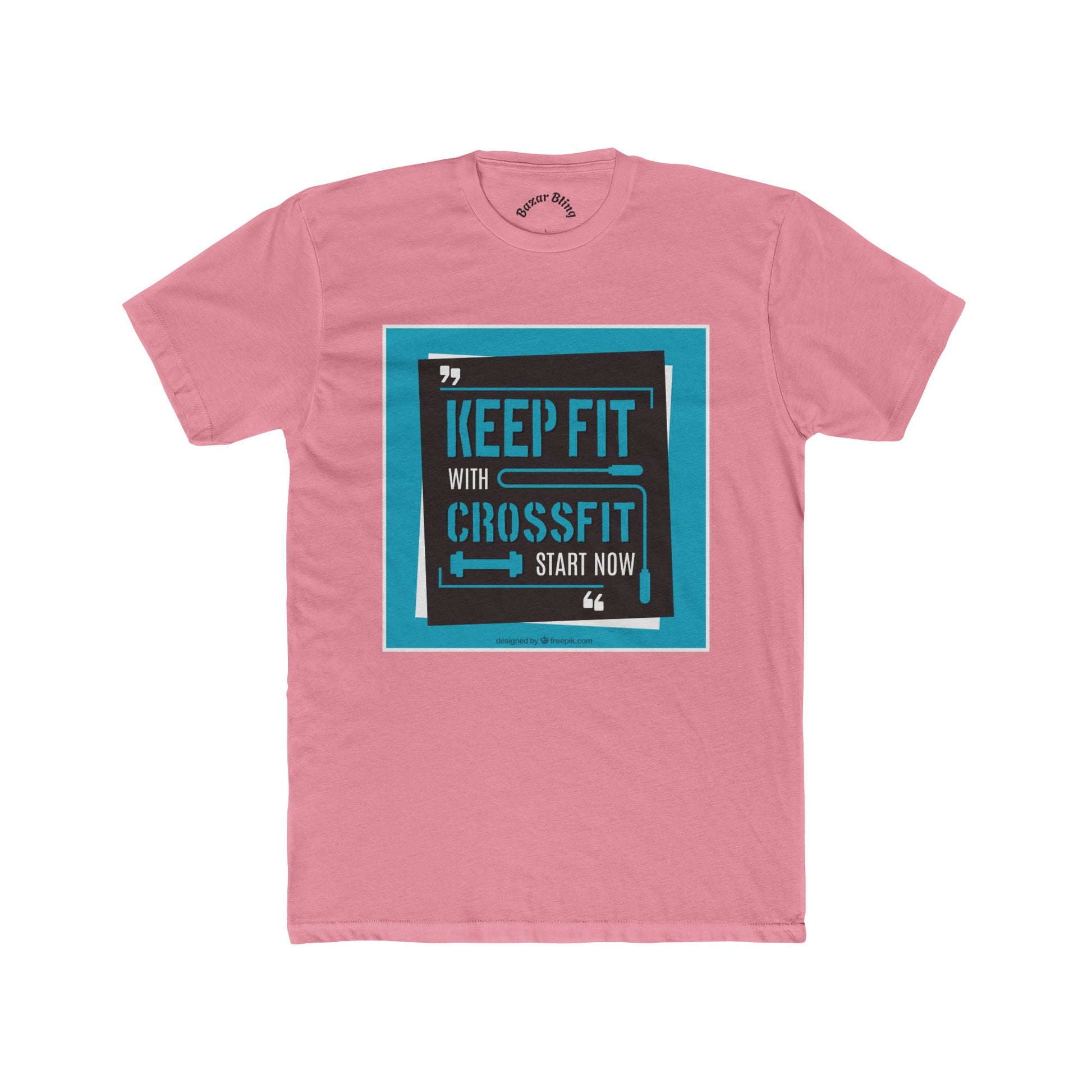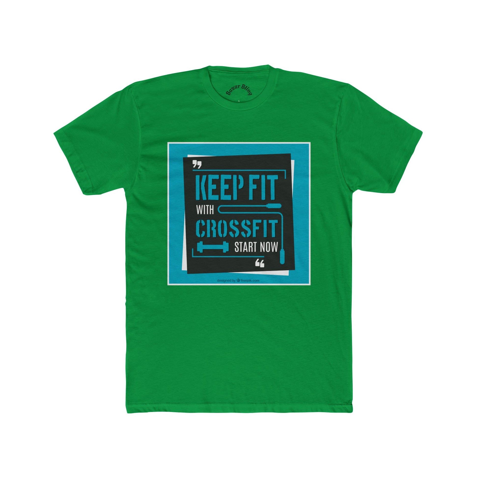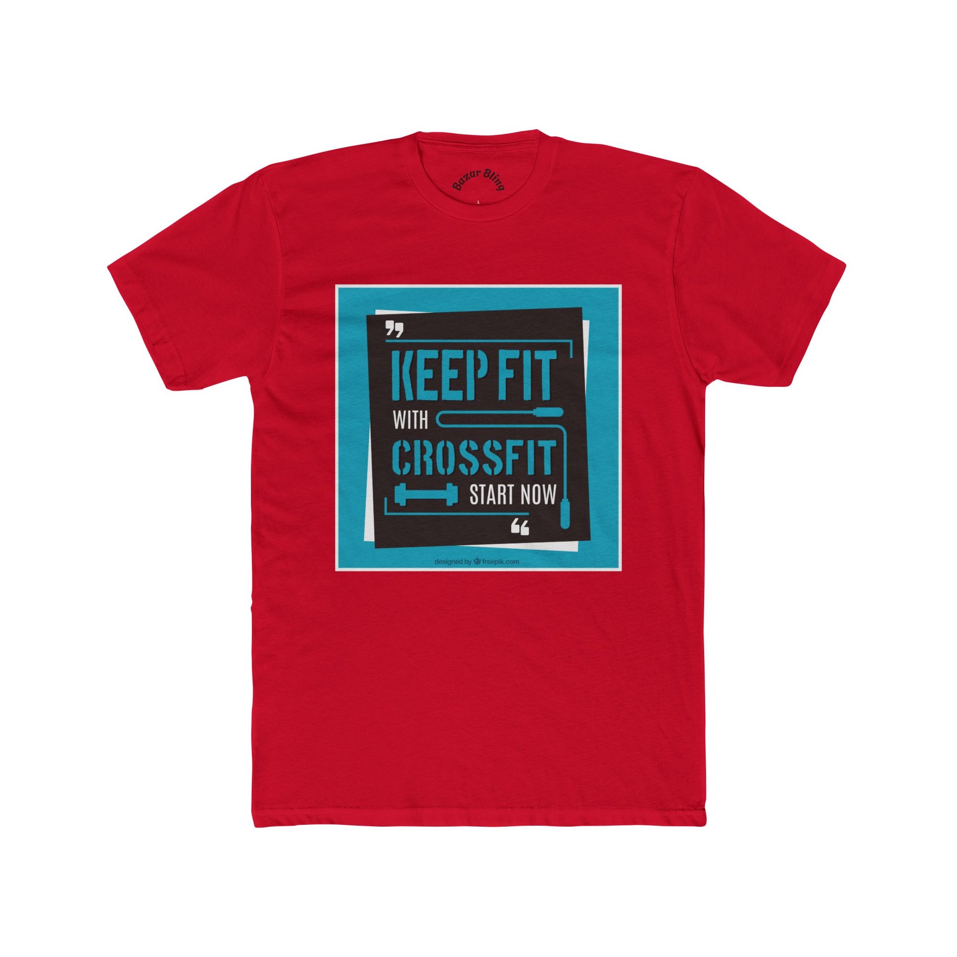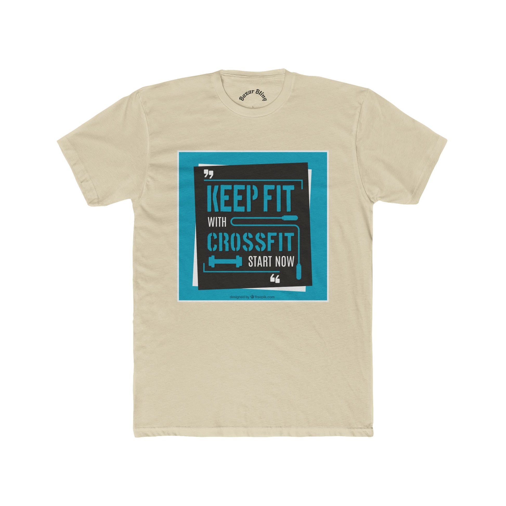 Light, breathable, and purpose-built for movement — this cotton crew tee carries a bold, motivational print that belongs in the gym bag. The front features a framed, stencil-style graphic that reads “KEEP FIT with CROSSFIT — START NOW,” while the back shows a subtle, arched “STRONGER EVERY DAY” message across the shoulders. Wear it between sets, on morning runs, or layered under a zip hoodie. The soft Next Level fabric feels broken-in from the first wear and holds shape thanks to shoulder tape and side seams. It’s plainspoken and focused: a shirt that speaks the language of progress and shows you mean business without shouting.