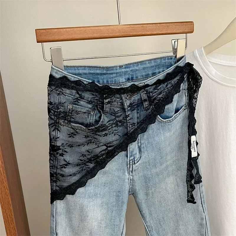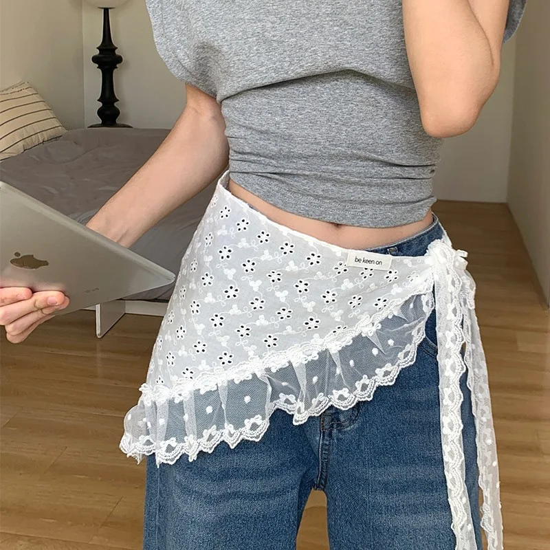 Korean Style Lace Embroidery Belt with Detachable Scarf Layering Accessory for Tulle Skirts Elegant Waist Chain with Floral