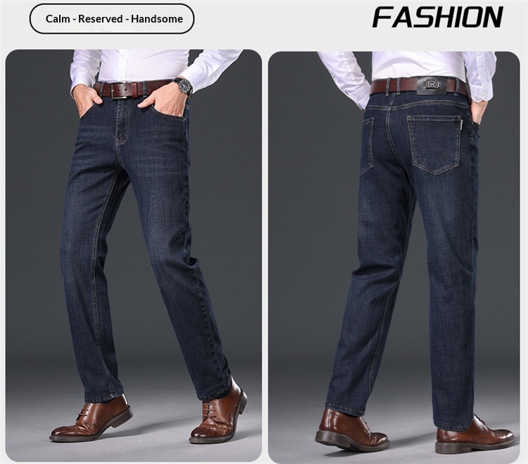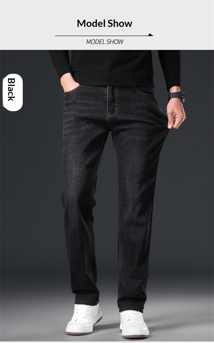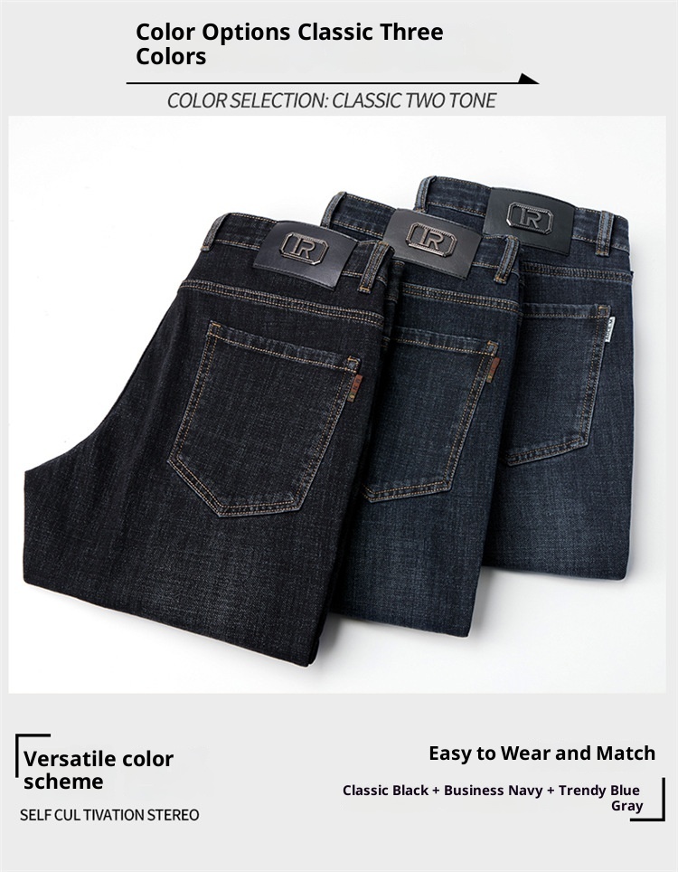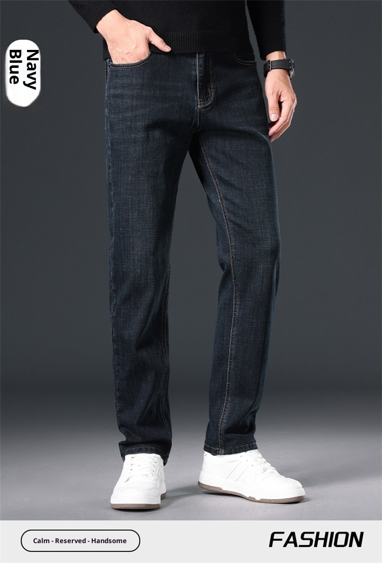 Mens New All-Match Thicker High-End Slim-Fit Straight Jeans