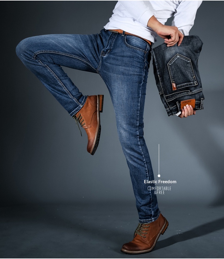 Mens Slim-fit Stretch Denim Jeans A Versatile Trendy Retro-tinged Korean-style Pair For Teens And Young Adults