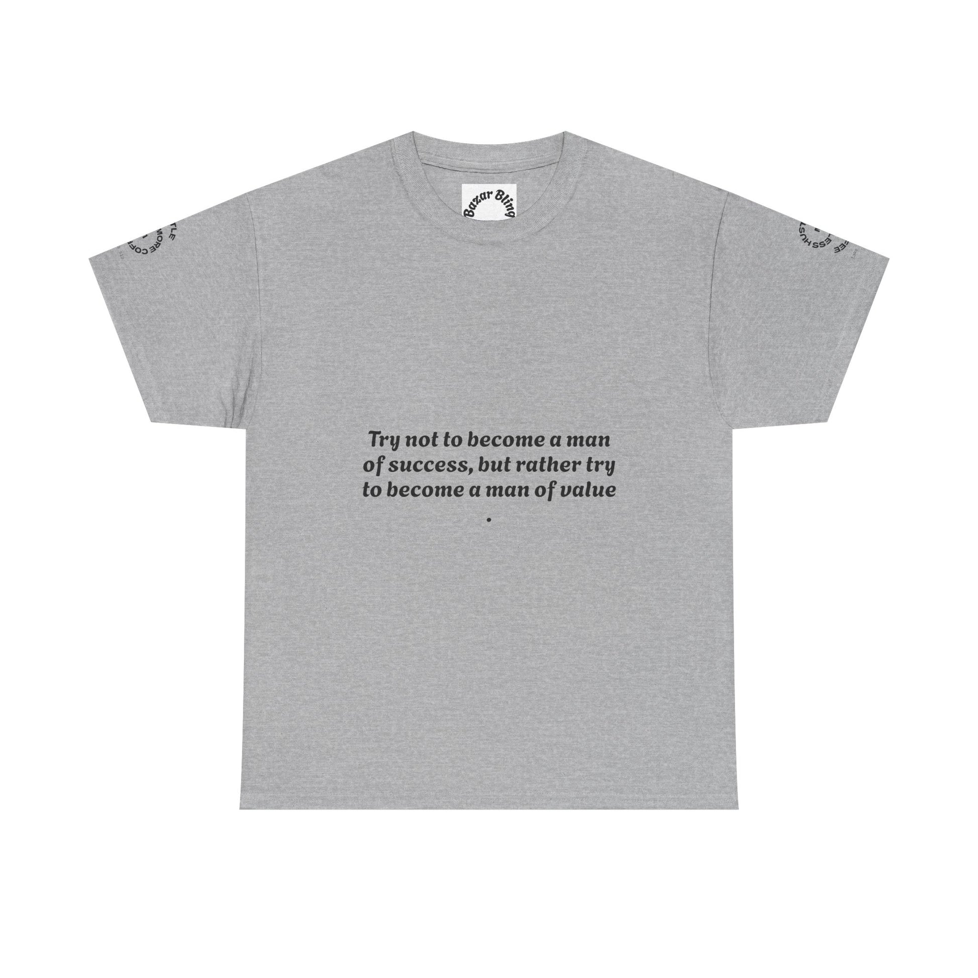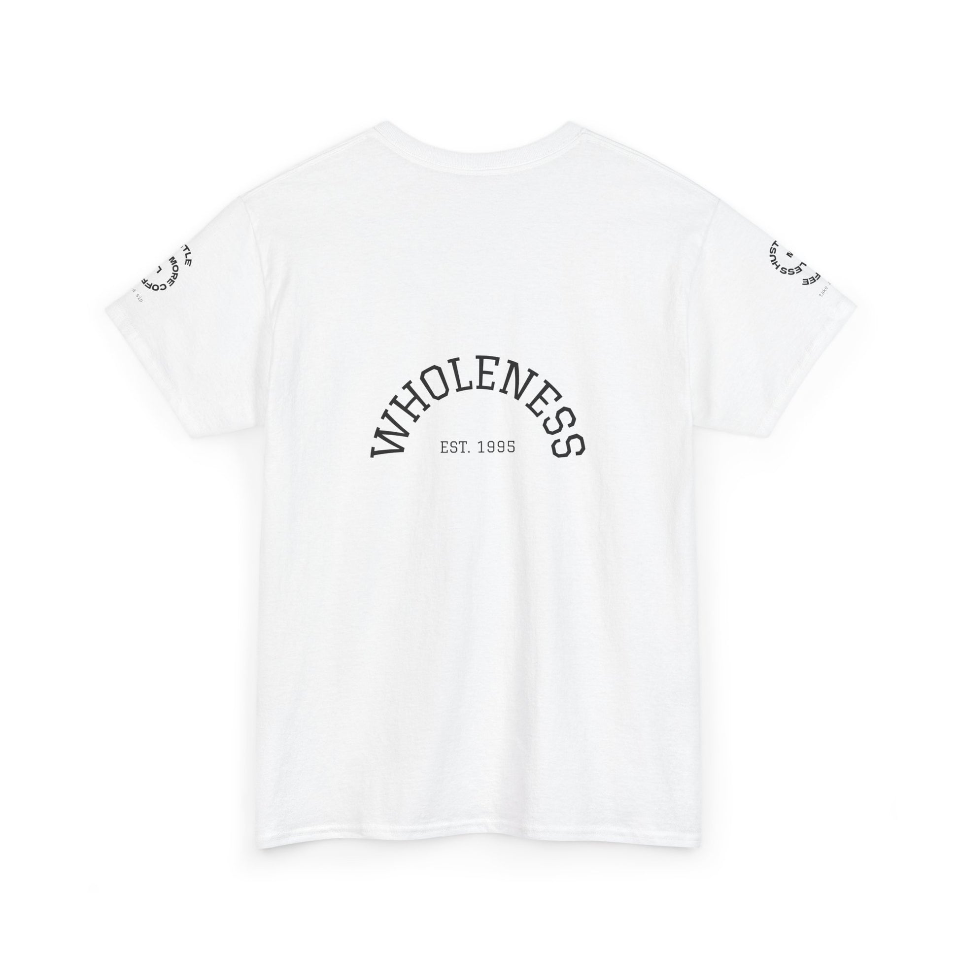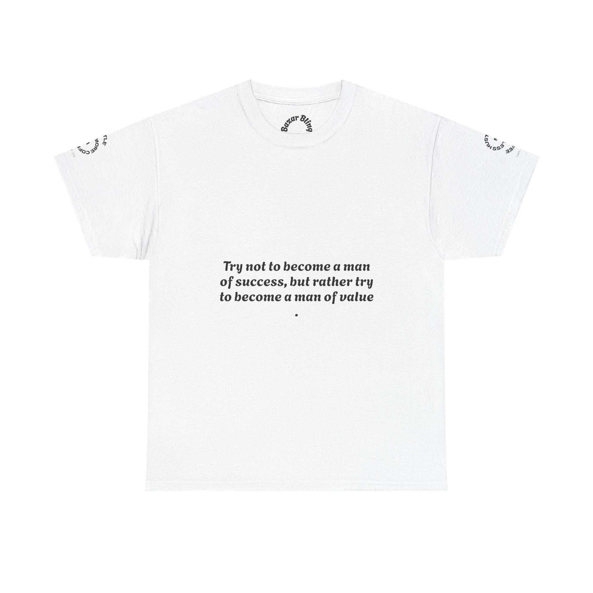 A clean, classic cotton tee with understated typography and a calm, thoughtful vibe. Soft white fabric carries a small, centered chest quote that invites reflection, while a subtle arched logo rests on the upper back. Tiny sleeve marks and a discreet inner neck print add handcrafted charm without shouting for attention. The relaxed crew shape and midweight knit make it comfortable for daily wear and quiet moments of connection or contemplation.