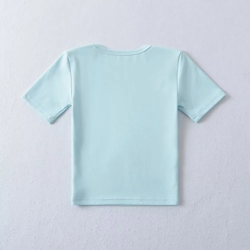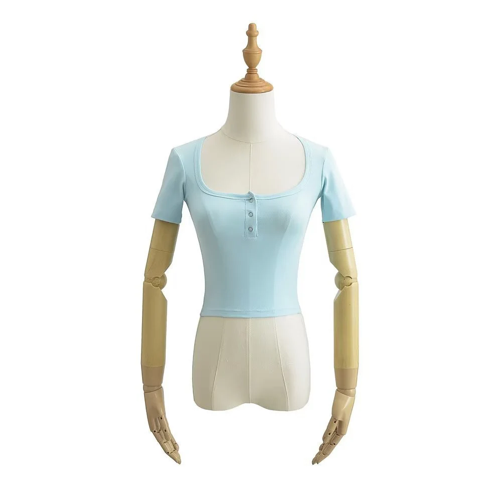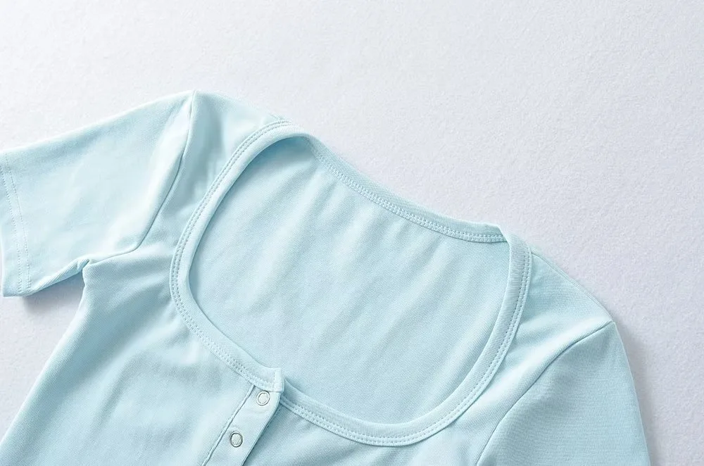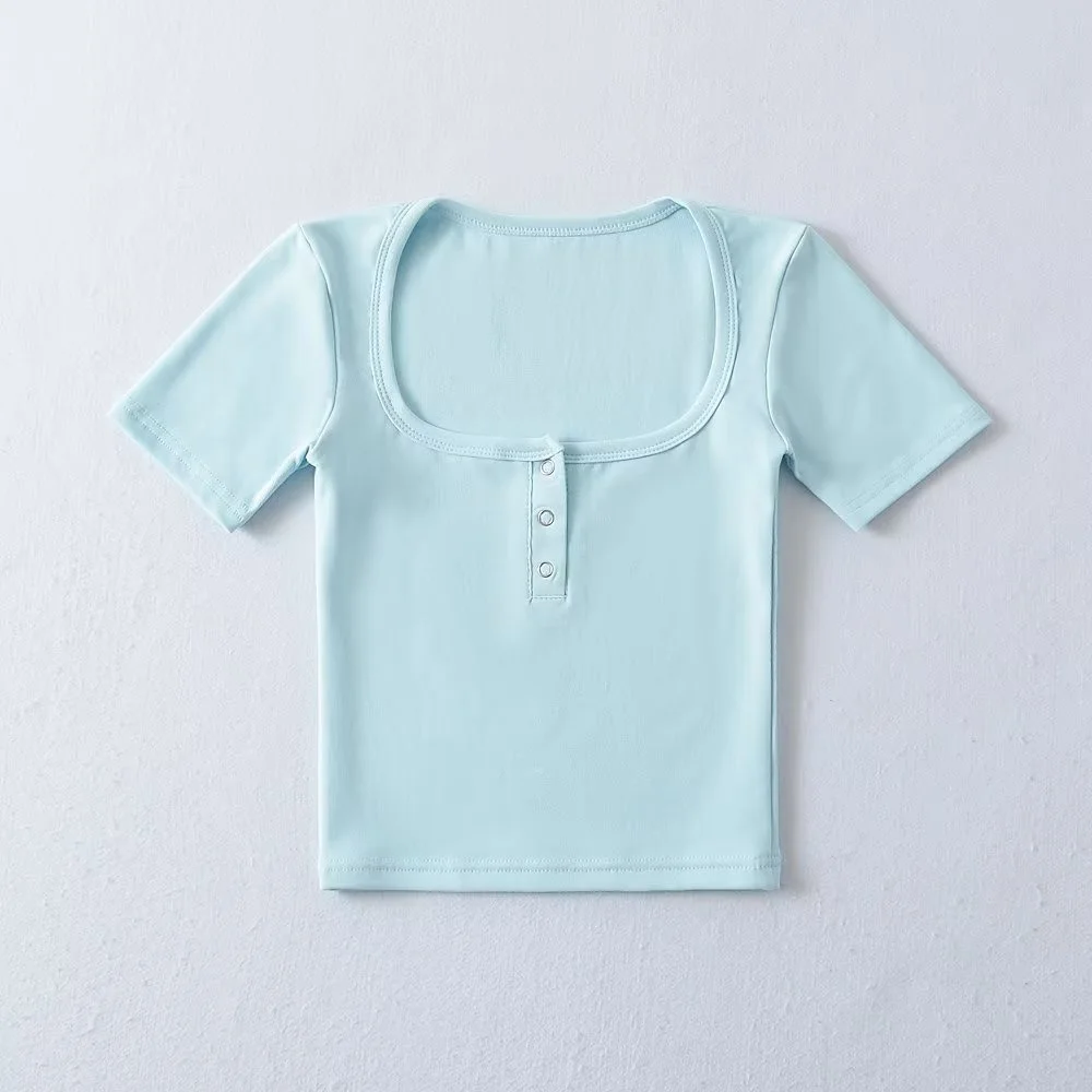 Women's Button Front Short Sleeve Crop T-shirt Casual Loose Fit Top in Various Colors