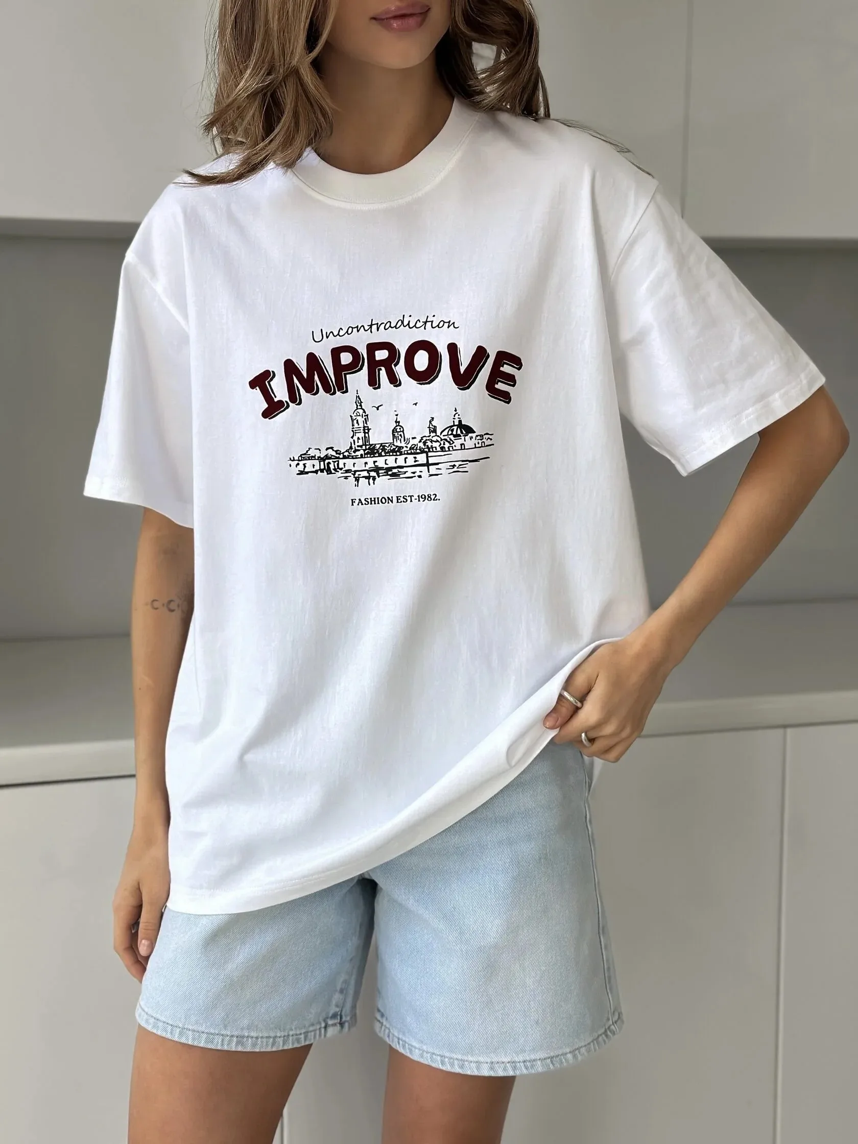 Women's Printed T-shirt 100% Cotton Casual Vintage Short-sleeve Fashionable Printing T Shirts Fashion Hip Hop Loose Tops & Tees